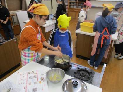 調理実習をしました。今回は、煮干しの頭とはらわたを丁寧にとってだしを取り、みそ汁を作りました。大根も柔らかく煮えて上手に出来ました。