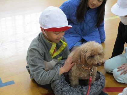 ワンちゃんとのふれあいだけでなく、犬を飼うときに大事なことや、犬が嫌だと感じることや人間と同じように犬にも気持ちがあって、どんな気持ちなのかを写真を見てみんなで考えたりしました。