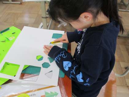 図工科では、初めてのカッターに挑戦しています。カッターの安全な使い方を学習して、練習用紙で切っていた時は「こわい〜」「きんちょうする〜」とこわごわと力加減が分からずに切っていた人も、何時間か練習した今日は、上手にスーッと切れるようになってきました。