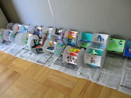 先週から取り組み始めた「かみざらころころ」ですが,時間が進むにつれて,子ども達も色々な工夫を取り入れながら,楽しい作品作りができてきています。今日からはメインの飾りの部分は終わって,両側のかみざらの飾りつけに入っていきました。