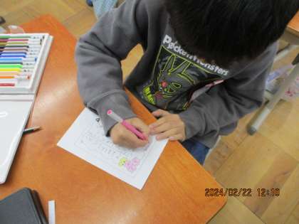 今日は,6年生をおくる会のときに,たてわりグループのリーダーさんへプレゼントする寄せ書きのメッセージを書きました。