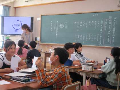 5年生は、国語の学習で「ひみつの言葉を引き出そう」という言葉の準備運動をしました。