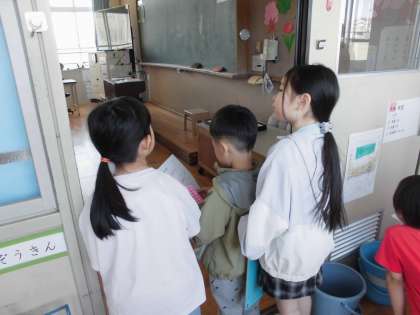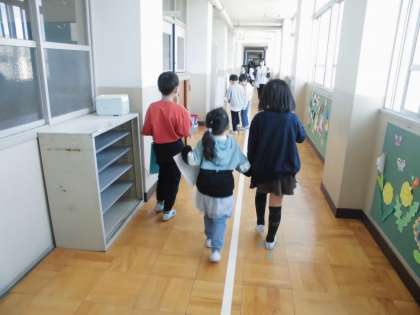 今日は、1年生を学校探検に連れていきました。
