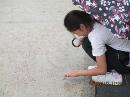 今日から理科は「地面を流れる水のゆくえ」の学習に入りました。ちょうど今日は前日からのしっかりとした雨ふりのおかげで,雨の日の地面の様子を観察するにはばっちりのタイミングでした。