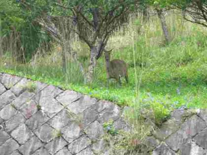 雨上がりの草を食べに、鹿も姿を見せてくれ、子どもたちのテンションも上がってきました。