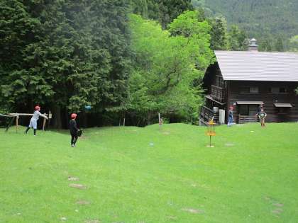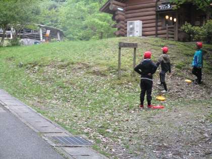 ハイキングの後は少し休憩を取り「フライングディスクゴルフ」で遊びました。