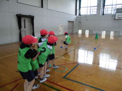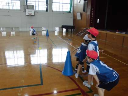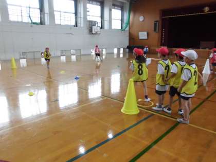 コーンを回ったり、ミニコーンをタッチしながら進んだり・・・