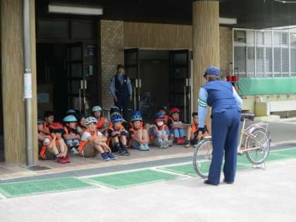 そして始まった自転車教室。まずは伏見署の方からのお話からスタート。