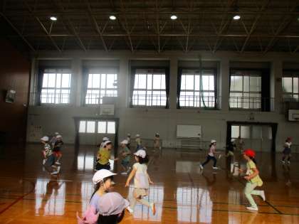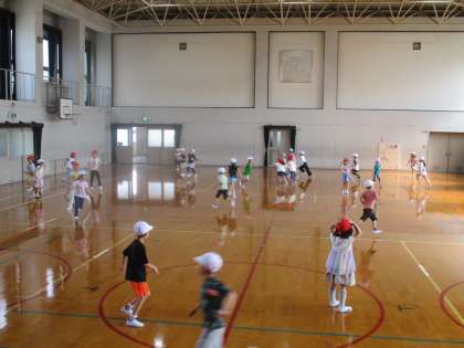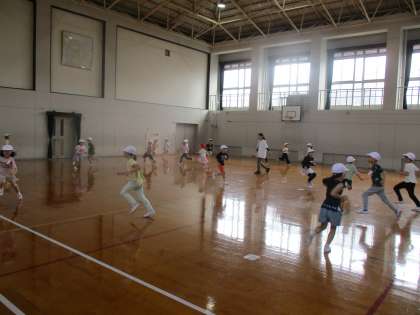 今週の朝スポは、体育館で1・2組合同の鬼ごっこをしました。