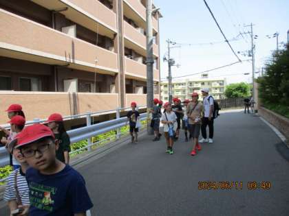 今日は総合のフィールドワークで,校区の北がわをまわりました。