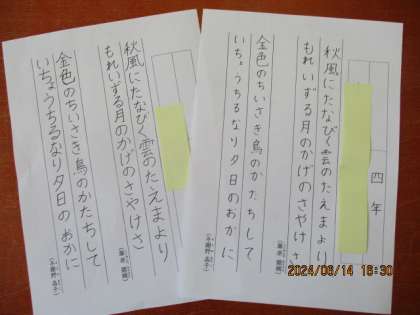 そのあとは,みんな気持ちを切り替えて,書写の硬筆作品に真剣に取り組めた子ども達でした。残りの時間で,みんなで「いすとりゲーム」と「なんでもバスケット」を楽しみ,少しだけほっこり過ごすこともできました。