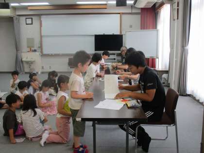 それぞれの先生方にアドバイスをもらいながら、キラキラシールを貼ってもらって嬉しそうなみんなでした。