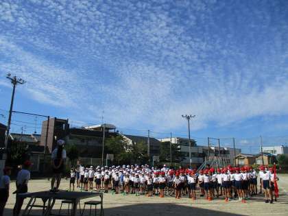 これまで暑さや雨で思うように練習ができなかったので、全校練習は晴天になりますようにとみんなで祈っていました。