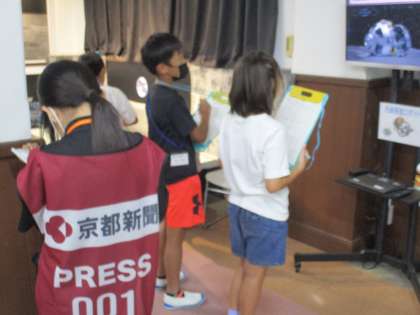 京都新聞の人たちは、テーマを決めて体験している子たちに取材に行き、その取材をもとに記事を書きました。取材をする人、カメラマンをする人に分かれて協力してグループで1つの記事を完成させました。