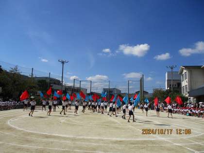 長い旗をおもいきり振りながら、巧みに操る高学年の表情はみなキリっとしていました。