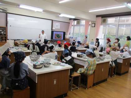 清和荘の竹中さんに来ていただき、だしのうま味について教えていただきました。だしを試飲して、そのだしを使った茶碗蒸しを作りました。みんなで協力してい作ったものは、やはりおいしかったようです。とても簡単に作れるので、ぜひ家族にもふるまってほしいと思います。