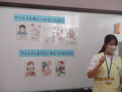 インフルエンザを中心に感染症が押し寄せています。今日の学習を自分たちの生活に生かしてほしいです。