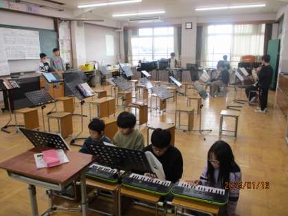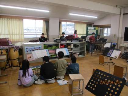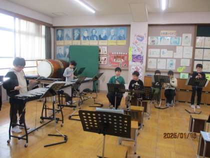 三学期の音楽は,合奏からスタートです。主な旋律はリコーダーと鍵盤が担当し,そこに木琴・鉄琴・低音楽器が加わっての合奏です。