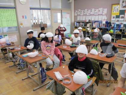 先週図工で取り組んだ「はりこのたまご」がすっかり乾燥したので,今日みんなで中の風船を割って空気をぬき,はりこを仕上げました。