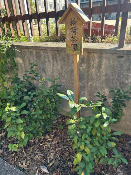 地域の方のご厚意で手入れをしていただいている「稲荷ガーデン」に「稲荷茶園」ができました。立礼の前にはお茶の木が植樹されています。