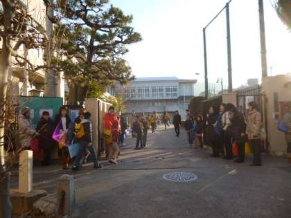 本校は1月7日から学校が始まりました。長期休業明けの最初の日はPTAの協力で子どもたちと一緒に正門前であいさつ運動をしています。7日の日もたくさんの保護者の方と一緒に「おはようございます」とあいさつ運動をしました。登校してきた子どもたちも元気よくあいさつを返していました。冬の寒い日に暖かなふれあいの一場面でした。
