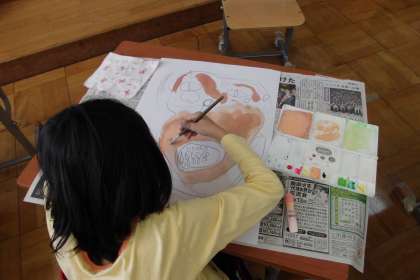 よくよく見て描きました。途中で笑いがおこったりお互いの作品を見合ったりしました。