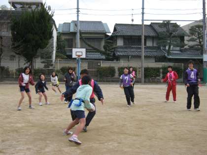 6年生はもうすぐ卒業です。1年間がんばってきた部活動で、今週は教職員との交流試合を行いました。月曜日の前半はバスケットボール、後半はタグラグビー、火曜日はバレーボールを交流しました。子ども達は負けないようにチームワークを組んで、声を出していっしょうけんめい対戦しました。教職員チームが勝ったり、子どもチームが勝ったりと楽しい交流試合になりました。