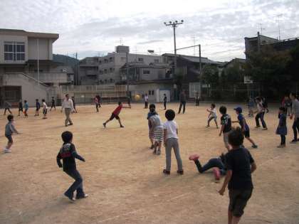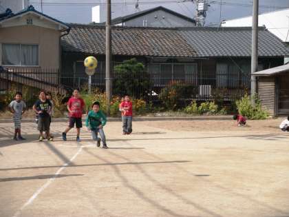 10月25日(土)10:00〜12:00運動場でおやじの会主催「ドッジボール・キックベースボール大会」がありました。低学年と高学年に分かれ,グーチームとパーチームで対戦しました。