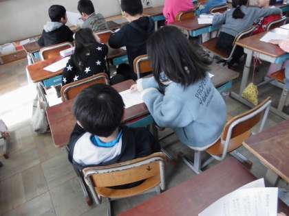 生活科の時間に生まれた時から今までの成長を振り返っています。ある日の授業は友だちの良いところやすごいなと思うところを書いて友だちに伝えました。書いてもらったことを読んで、「わたしのことをよく見てるなと思った。」「たくさん書いてもらえてうれしい。」と感想を書いていました。家の人にインタビューしたことや写真を使って、1冊の絵本を作っていきます。