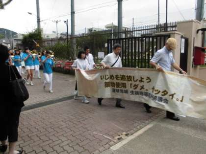 深草地域生徒指導連絡協議会の「いじめ追放・薬物乱用防止キャンペーン」パレードを行いました。