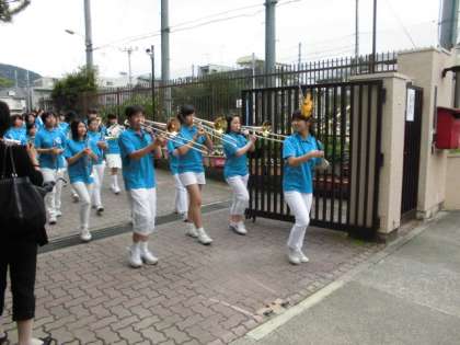 朝から多くの参加者のもと,深草中学校のブラスバンド部を先頭に稲荷小学校からパレードをスタートしました。