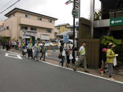 キャンペーンのティッシュを配りながら深草小学校まで歩きました。