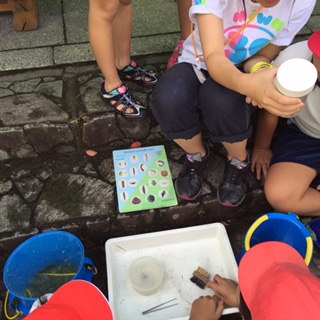 見つけた生き物は,トレーの上にだしたりケースに入れて観察したりしました。