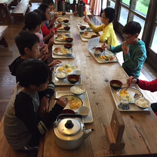 朝の集いを終えてみんなで朝食を食べました。