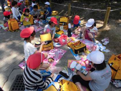 京都市動物園に行ってきました。大きな象が水浴びをしていたり,トラが間近にせまってきたり,きりんの顔がすぐそこにあったり・・・子ども達は目をキラキラさせとても楽しそうに動物たちと触れ合っていました。お弁当は,1年2年3年の仲良しグループで,仲良く食べました。お天気にも恵まれとっても楽しい遠足でした。