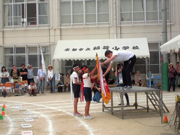 稲荷小学校創立100周年記念運動会は,赤組の勝利で幕を閉じました。
