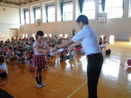 朝会の後に,よい歯の表彰式を行いました。
