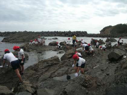 宮崎浜では,マリンランドの学芸員の方から海にかかわる自然について学びました。