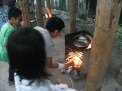 花背山の家最初の野外炊事です。
