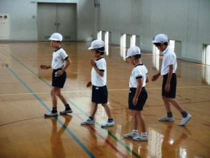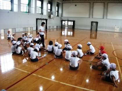 「おもちゃのパーティ」をテーマに,「ゆかいな時計」の曲に合わせて4つのグループの発表です。