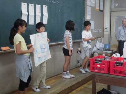 9月28日にエコライフチャレンジのふり返り会がありました。子どもたちが夏休みに取り組んだエコライフチャレンジの診断書の結果から,自分たちが地球温暖化を防ぐためにできることは何かを,グループワークを通して班で考え発表しました。