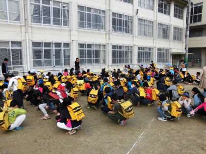 そして,町ごとにまとまって危険な所や「こども110番の家」を確かめながら下校しました。