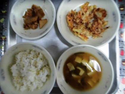 今日のみそ汁は,京都で作られた「京北味噌」を使っています。
