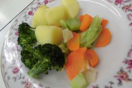 調理実習第二弾は,ゆで野菜のサラダとゆでいもです。