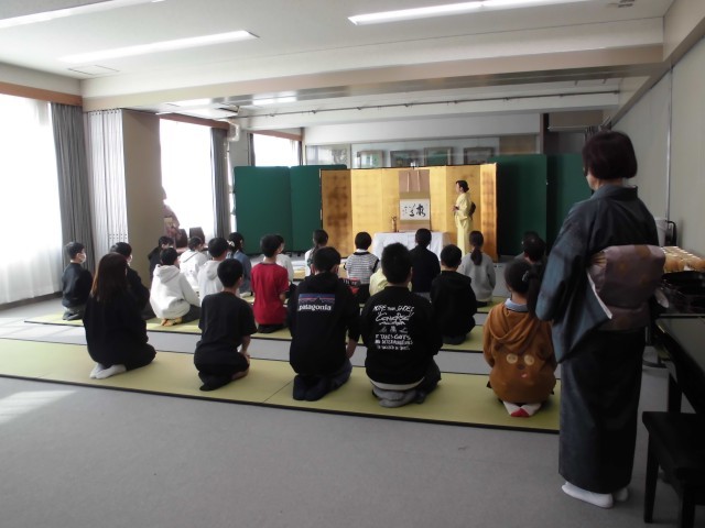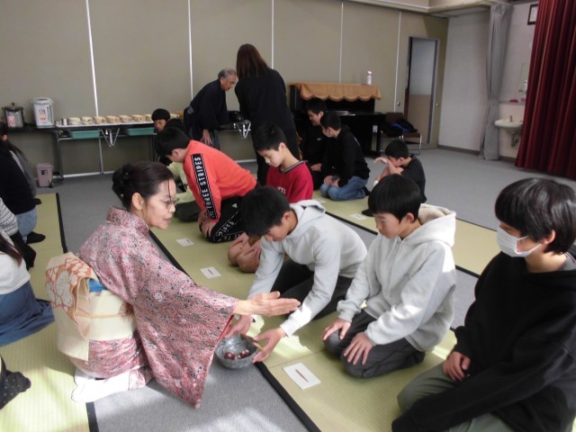 6年生は、伝統文化に学ぶ授業の一環で茶道体験をしました。