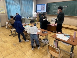 子どもたちは「駄菓子屋さん」の学習の中で、「おこづかい200円をつかえるようにしよう」というめあてで、楽しそうに友だちと買い物のやりとりをする姿が見られました。