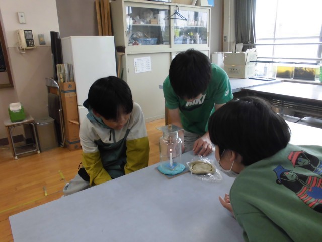 理科では、『ものの燃え方と空気の動き』の学習をしています。
