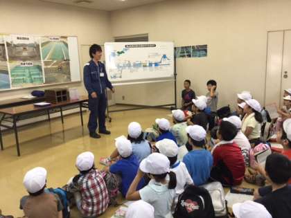 まずは浄水場の職員さんにお話を聞きました。社会の学習で水をきれいにする方法や施設については調べていましたが,さらに詳しいお話を聞くことができて,子どもたちは驚きがいっぱいあったようです。