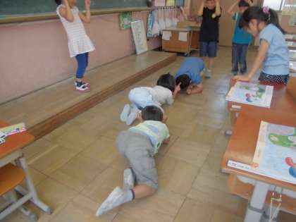 かたつむりになりきって,かたつむりの歌を楽しみました。