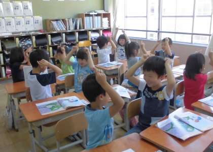 はくに合わせて,楽しく歌ったり動いたりしました。